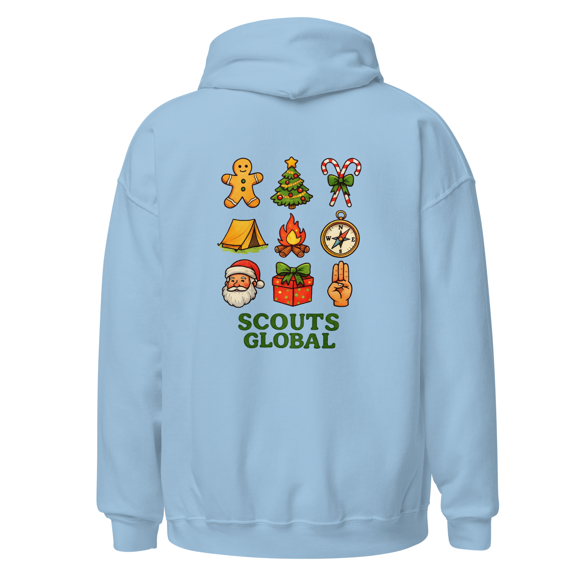 Bring the magic of the season into the great outdoors with our Scouts Global Christmas Hoodie. Designed for those who feel most at home around a campfire or beneath a canopy of stars, this cozy essential blends festive holiday vibes with the timeless spirit of scouting.